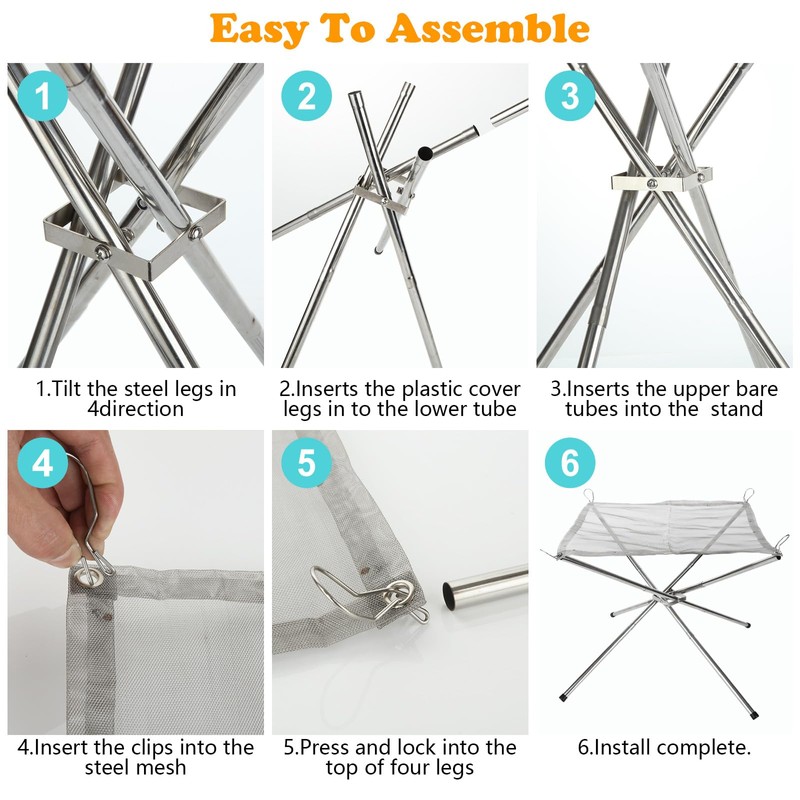 - Easy to Assemble: No special tool is required, you can easily aseemble the camping fire pit by connecting each stainless steel feet to the main support frame.