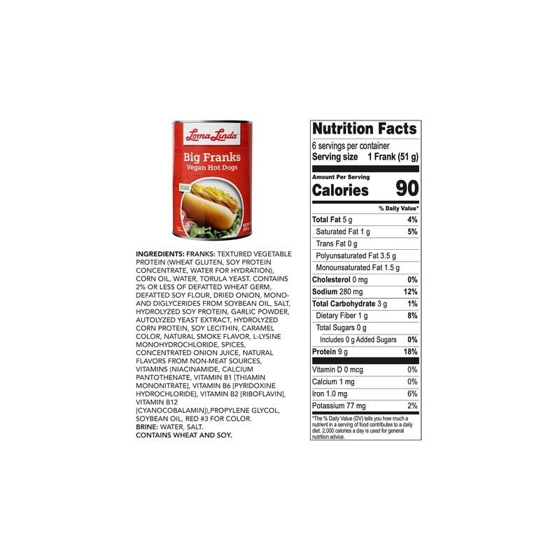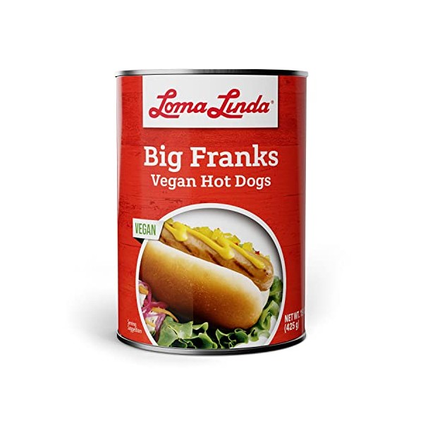 Vegan Plant-Based Hot Dogs - Loma Linda Big Franks Meatless Sausages, High Protein Meat Alternative, Vegetarian & Non-GMO Frankfurters, Ready-to-Eat, 15 oz Can