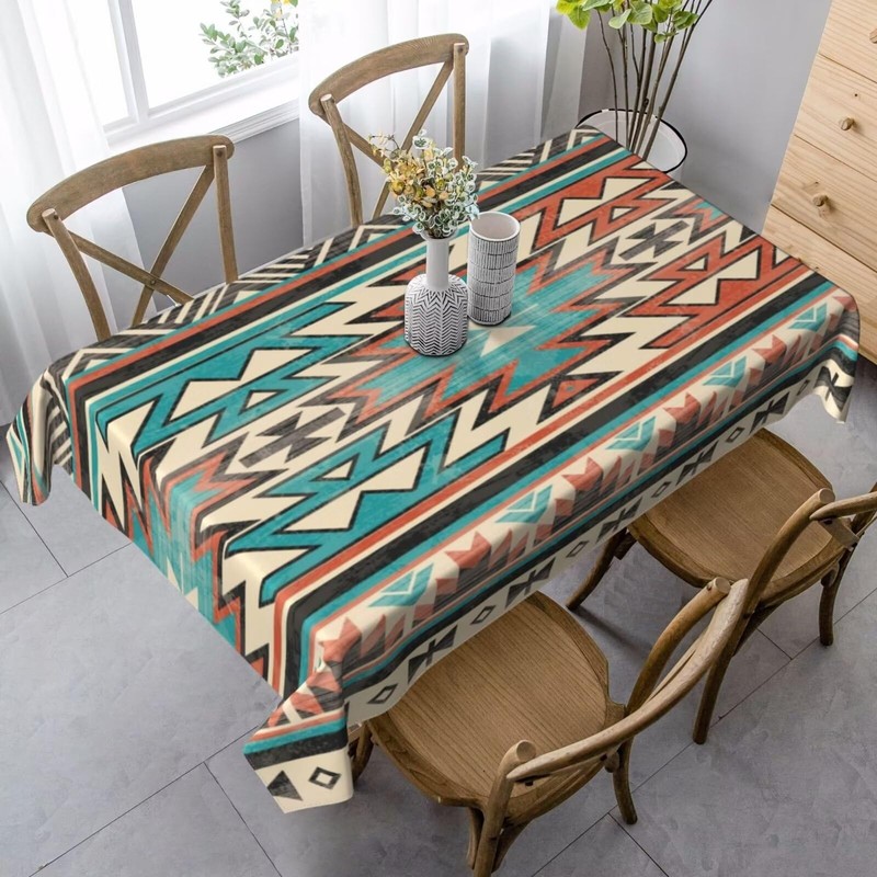 LOMADIA Aztec Rectangle Tablecloth, Southwestern Native Tribal Ethnic Western Boho Geometric Waterproof Polyester Table Cloth Oil-Proof Table Cover for Kitchen Dining Party Decor 55"x75"