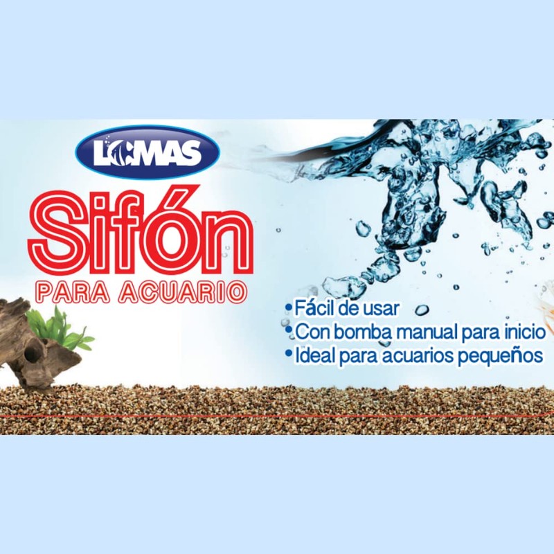 - El sifón chico de Lomas sirve para sacar desechos del acuario y realizar un intercambio de agua de forma sencilla y efectiva.Retira la suciedad del sustrato, el alga que se adhiere a las paredes y otro tipo de desechos en el agua.