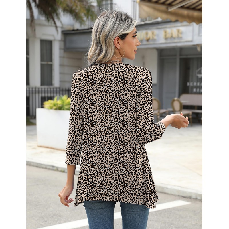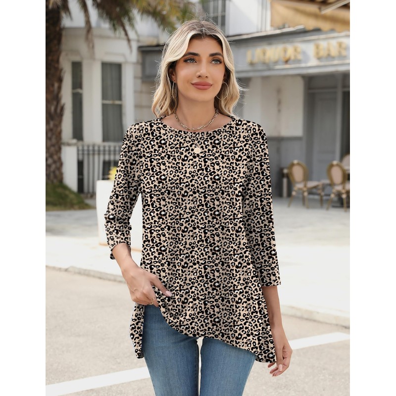 LOMON Leopard Print Tops for Women Plus Size 3/4 Length SLeeve Womens Summer Tops Tunics to Wear with Leggings 3XL