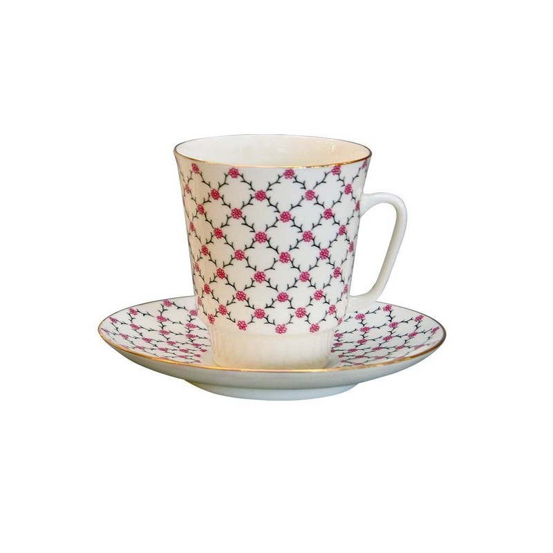 Lomonosov Bone China Porcelain May Coffee Set Pink Net 2pc 5.6 fl.oz/165 ml