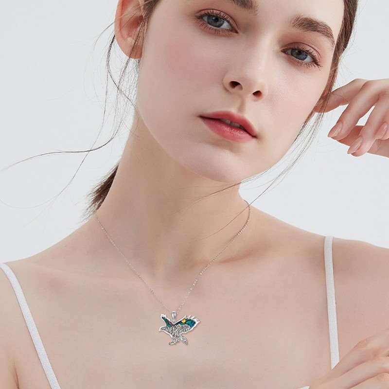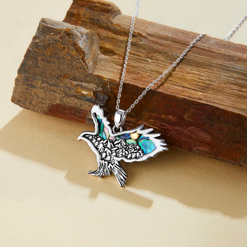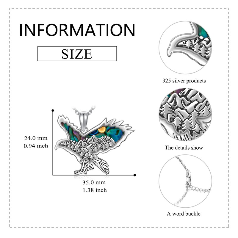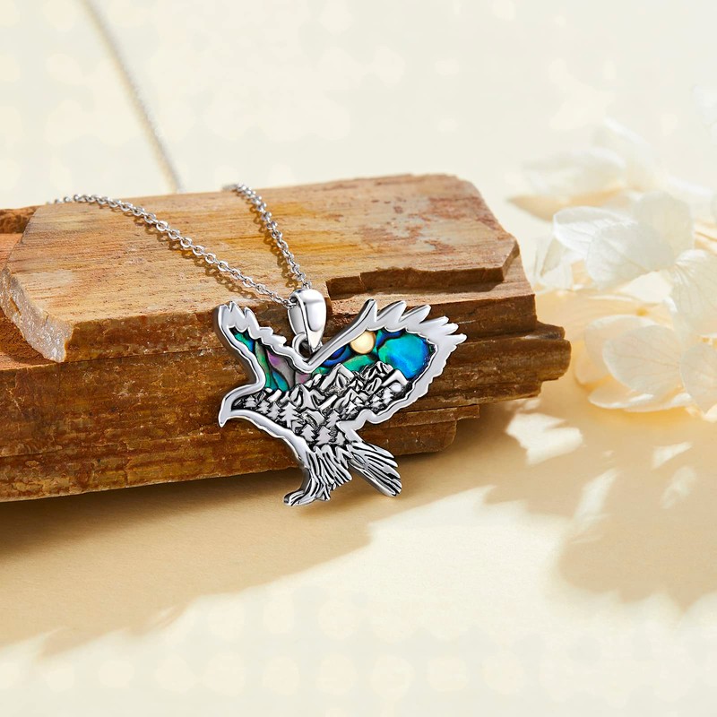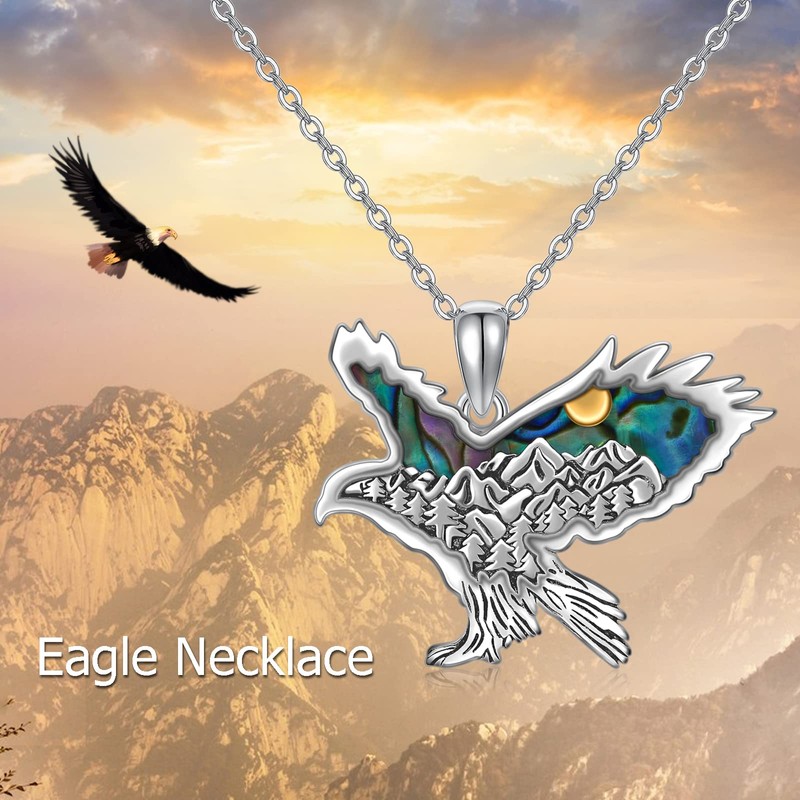 LONAGO Mountain Necklace Eagle Pendant Necklace Silver Eagle Necklace with Abalone Shell Gift For Women