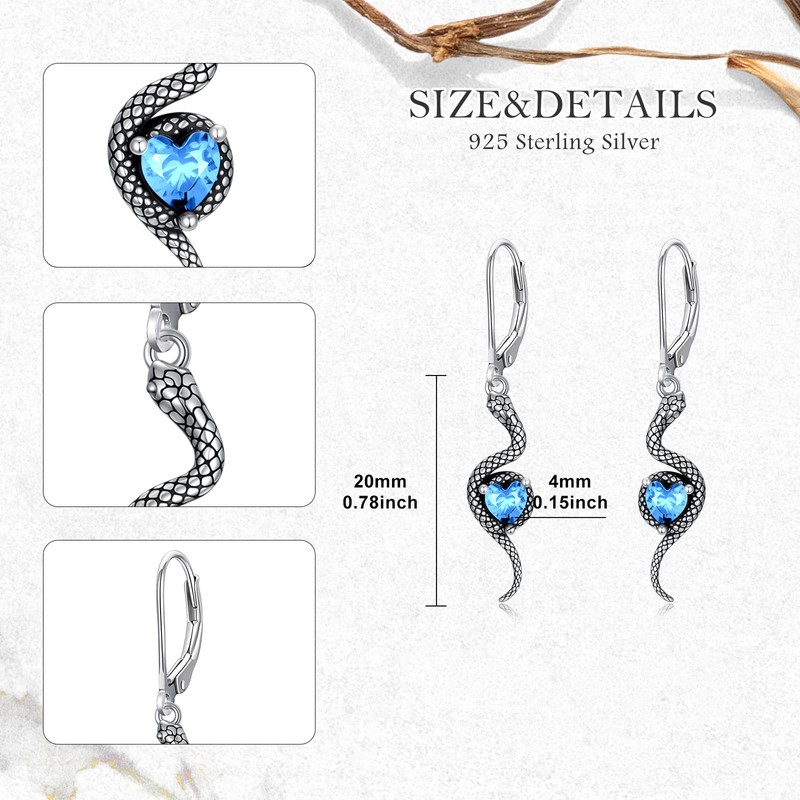 LONAGO Snake Earrings for Women 925 Sterling Silver Snake with Heart Cut Birthstone Earrings, Sterling Silver, Cubic Zirconia