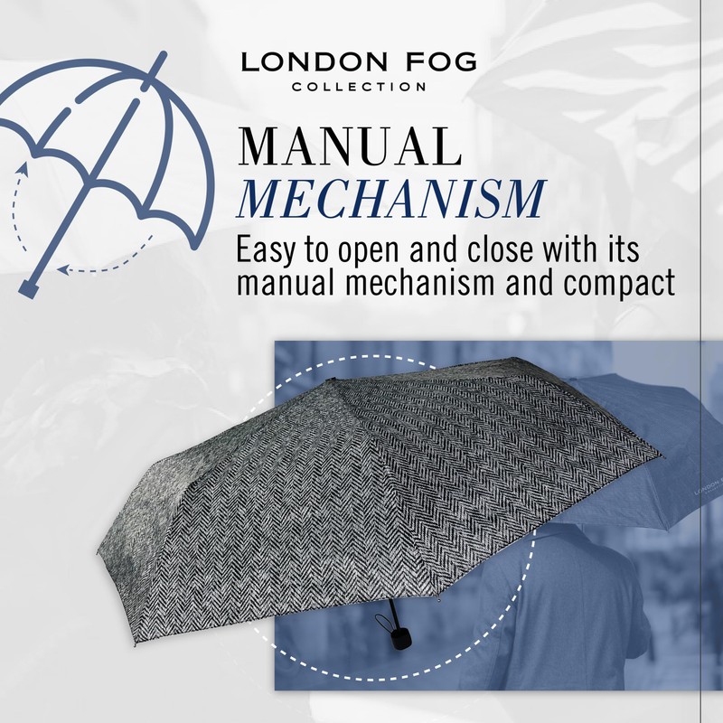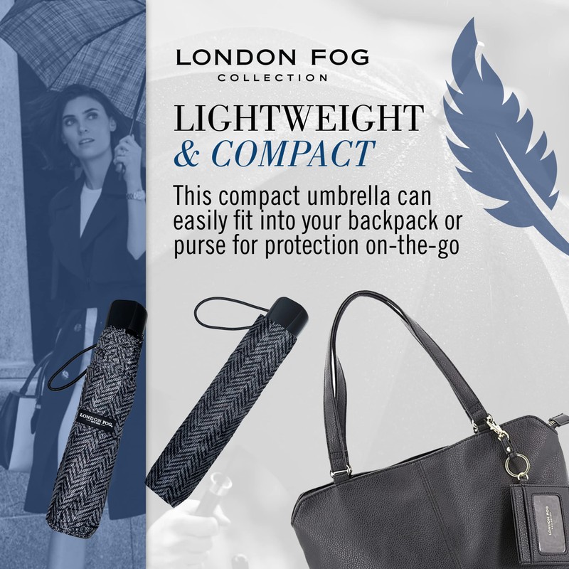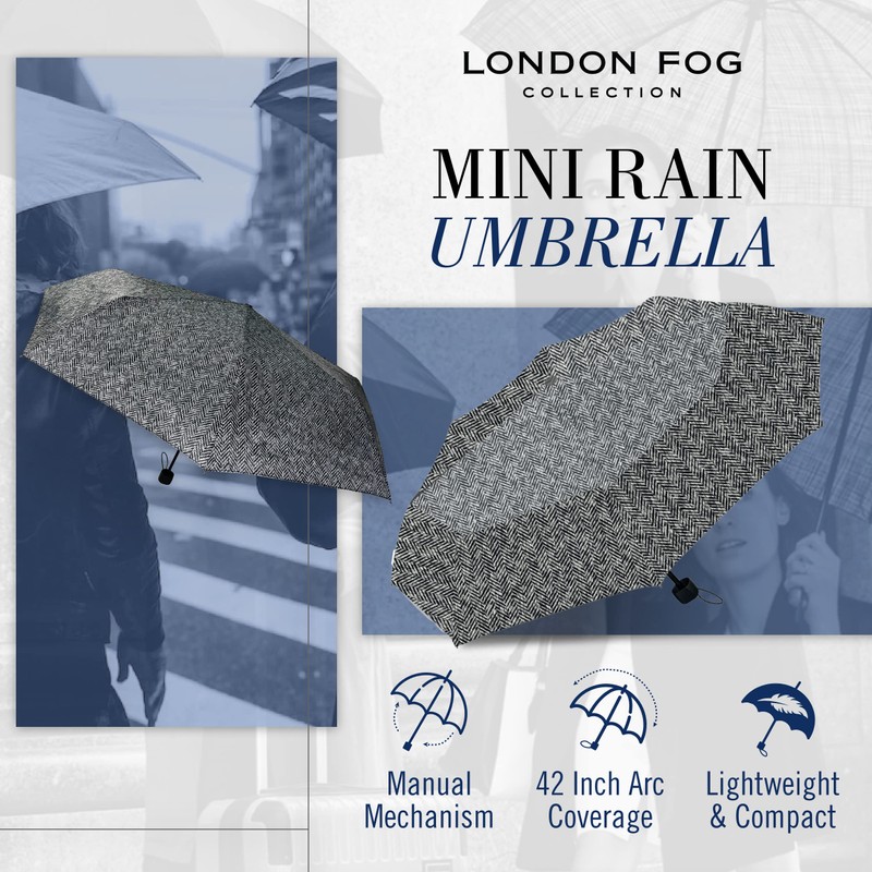 London Fog Mini Rain Umbrella, Manual Folding Umbrella, Windproof, Lightweight and Packable for Travel, Full 42 Inch Arc, Herringbone, Herringbone, 42 Inch Arc
