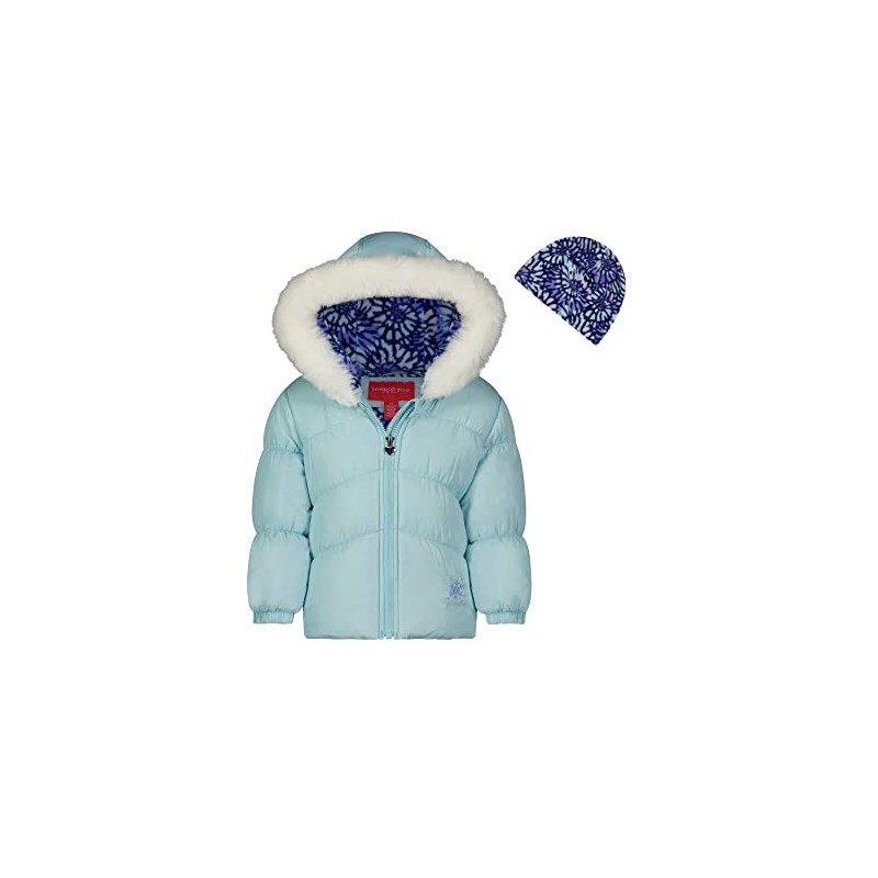LONDON FOG Toddler Jacket for Girls - Warm, Hooded Puffer Winter Jacket With Matching Beanie, Seafoam, Size 3T
