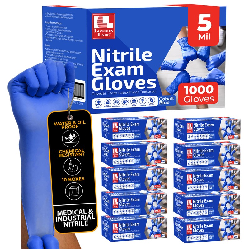 - Certified Protection for Medical & Industrial Use: Tested for chemical resistance and certified to ASTM D6319, ASTM D6978, and EN 455 Parts 1, 2, 3 & 4, London Labs exam-grade nitrile gloves meet global safety standards. Trusted by doctors, nurses, EMTs, dentists, caregivers, and first responders in clinics, hospitals and first aid kits. The professional Cobalt-blue color finish enhances visibility and cleanliness. London Labs nitrile gloves provide long-lasting protection and performance.