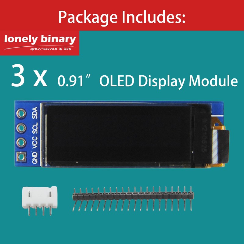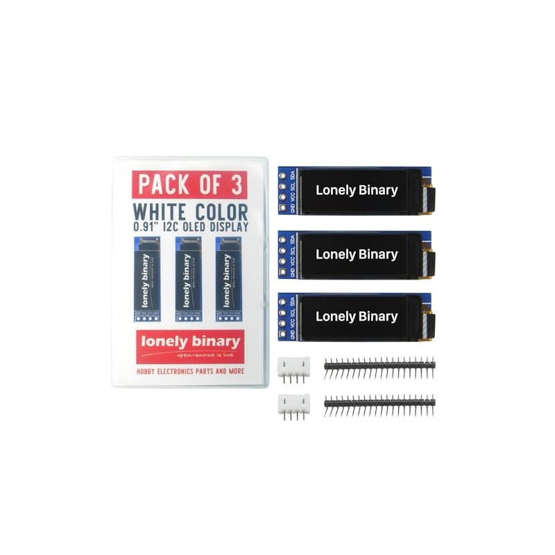 The Lonely Binary 3-Pack 0.91” OLED Display Module is a high-contrast, ultra-low-power display solution designed for DIY electronics, Arduino, Raspberry Pi, ESP32, and IoT projects.