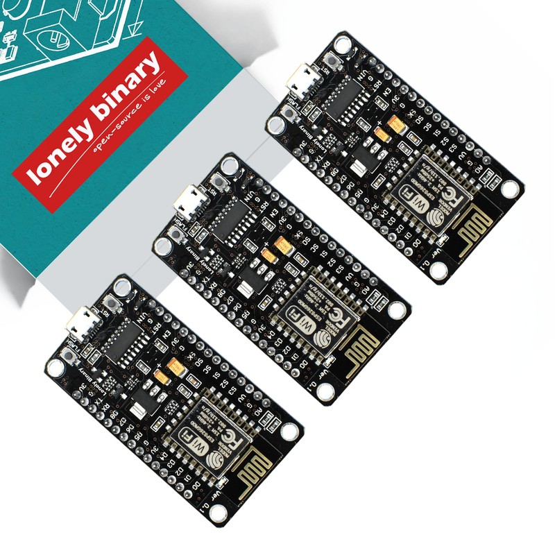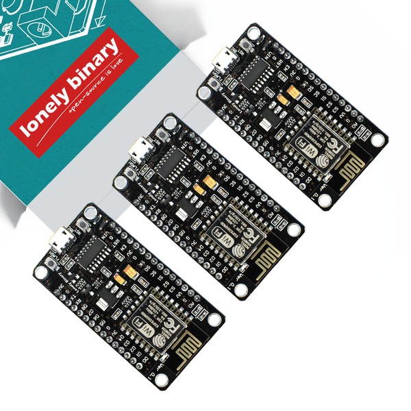 Lonely Binary 3- Pack ESP8266 NodeMCU WiFi Development Board – CP2102, Full-Size Microcontroller Module with USB for Arduino IDE, MicroPython, Lua, IoT Projects, Home Automation, DIY Electronics
