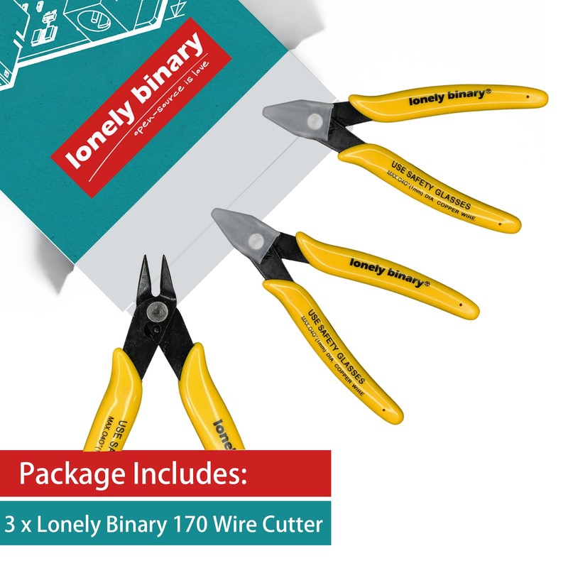 Lonely Binary Pack of 3 Wire Cutter Precision 170 Pliers for for Arduino, Raspberry Pi, and ESP32 IoT Projects and DIY Soldering, Electronics, and DIY Projects