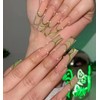 Long Coffin French Tip Press-Ons Nails - Green Swirl Design with Pearls, Easy...