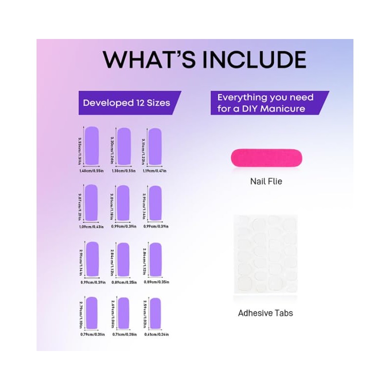 • EASY APPLICATION: The nails have an acrylic adhesive backing that makes them simple to apply without the use of glue, allowing you to achieve a salon manicure look in just minutes.