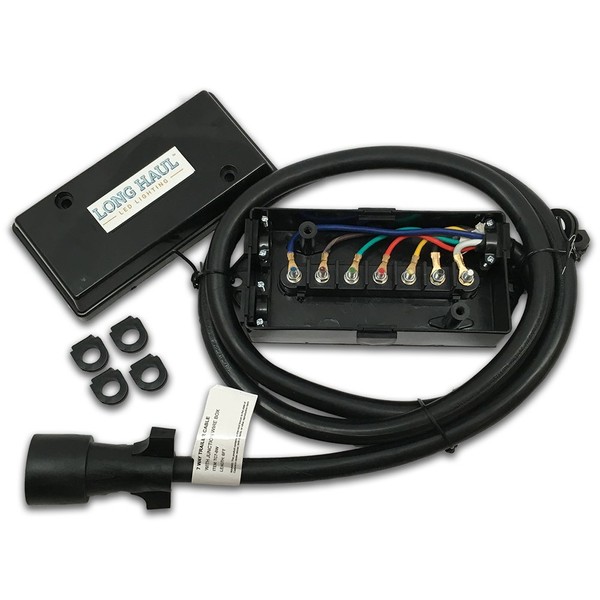 Ideal for custom trailer applications The Long Haul Trailer Cord with Junction Box provides a fast, simple way to connect the wires from the trailer cord to the trailer wiring. Designed for RV travel trailers, caravans and food vans, it's a great choice for trailers with electric brakes, interior lights, reversing indicators and other power needs. The trailer cord and thick plastic junction box are weatherproof and corrosion resistant. Features and contents This Long Haul Trailer Cord is available in 4ft lengths and comes with a fully moulded, attached 7-way plug. It features screws; straps; 4 closed and 4 open rubber fitted grommets; and a color-coded instruction sheet. The professional quality wires are pure copper. The 7 wires are color-coded and coated with a thick, rubber-like insulation. Cable and junction box installation The Long Haul Trailer Cord with Junction Box is intended for professional or DIY installation. It is essential that the product is installed correctly and only to vehicles for which it is suitable. The standard wiring methods may not necessarily work for your model, please contact the vehicle manufacturer for compatibility information. Improperly connected wiring can cause damage to electrical components; be a hazard or cause injury.