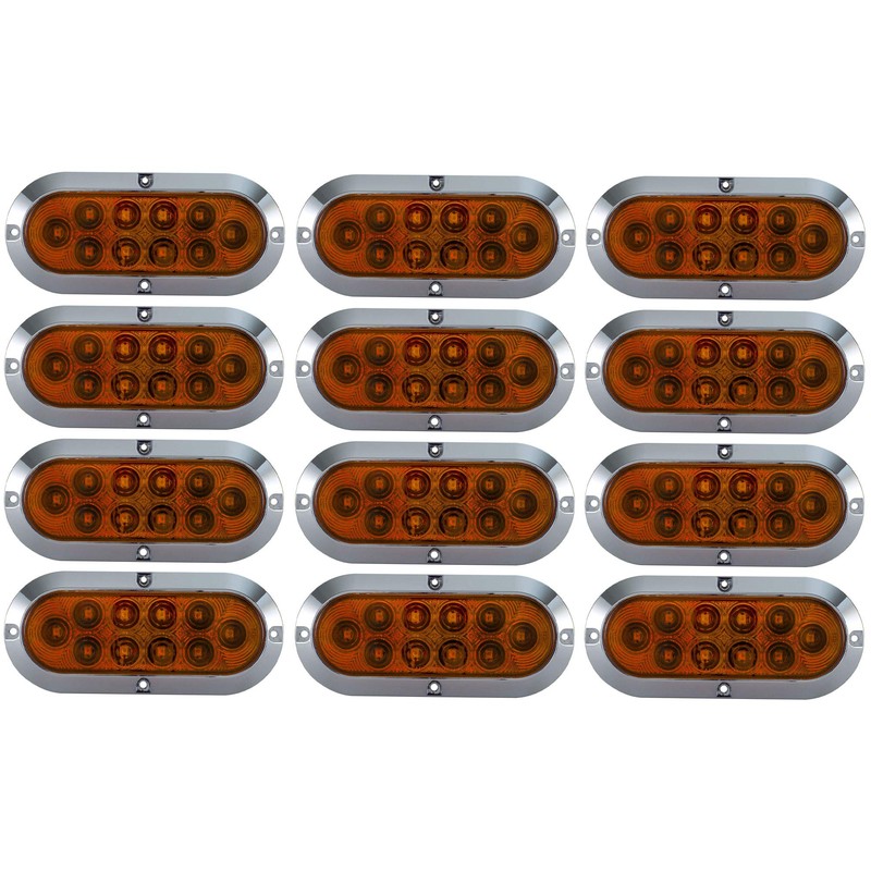 Long Haul Amber 6" Oval Surface Mount Stop/Tail/Turn LED with Chrome Bezel | Kit (12 Pack)