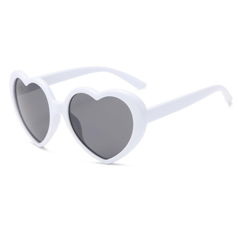 Long Keeper Polarised Sunglasses Heart Shape - Vintage Heart Sunglasses Heart Glasses Wedding Party Glasses Festival Costume Retro Glasses with UV400 Protection 54 mm, White Frame / Dark Grey Lens