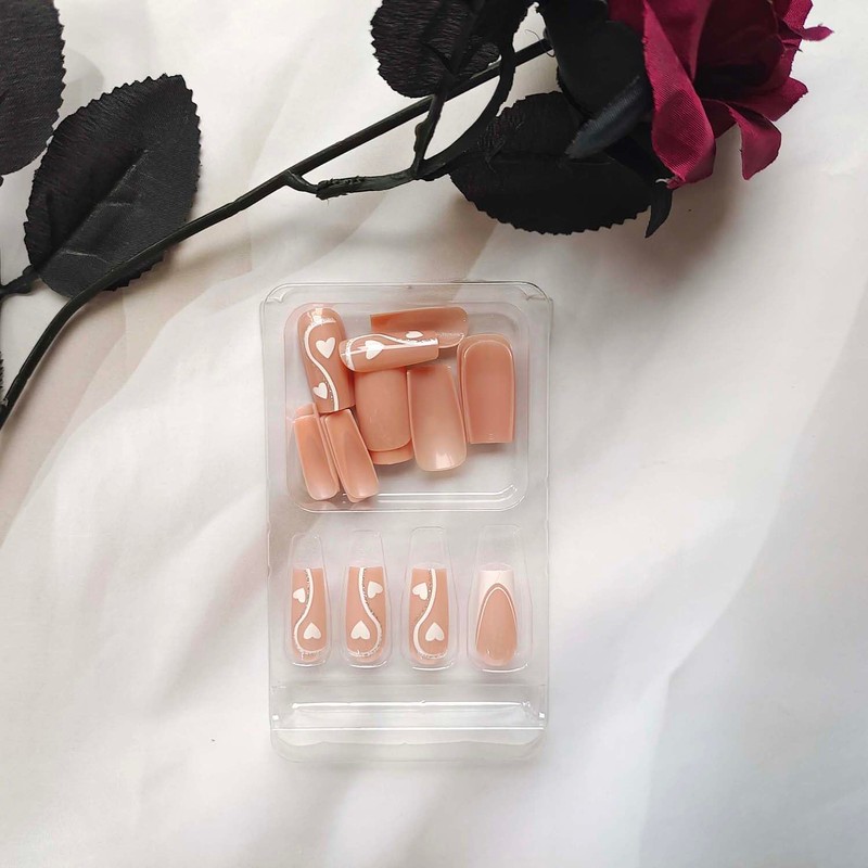 Name: Long Glitter Heart Line Full Cover Fake Nails