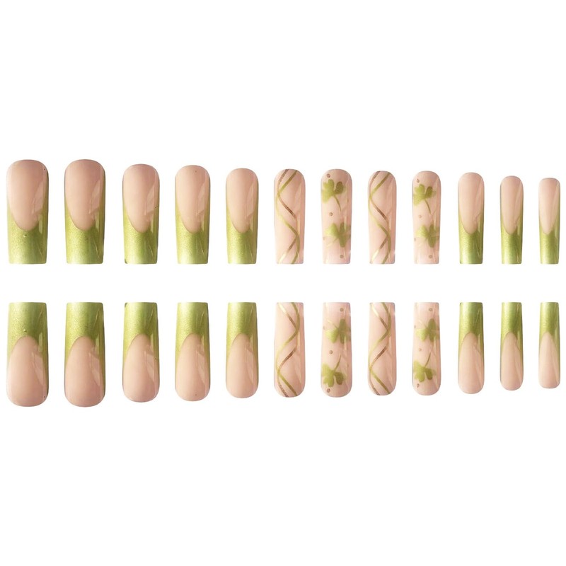 - Packaging includes:You will receive 24 st.patrick’s day fake nails, 24 jelly glue, 1 small wooden stick, alcohol bag, nail file, no additional tools required.