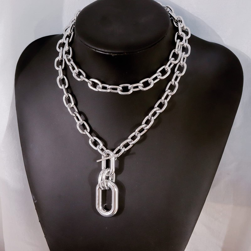 Long tiantian Chunky Gold Necklace for Women Layered Chunky Chain Necklace Women Punk Statement Necklace Chunky Choker Necklace Jewelry Gifts for Teen Girls (silver)