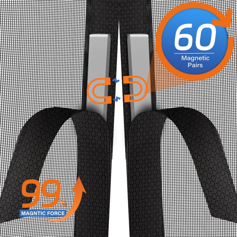 • Upgraded PET Material: This PET material magnetic screen door is specially designed for pets & kids, stronger than polyester and fiberglass mesh, cat claws and dog bites will not break, the denser screen door mesh can keep any nasty insects out