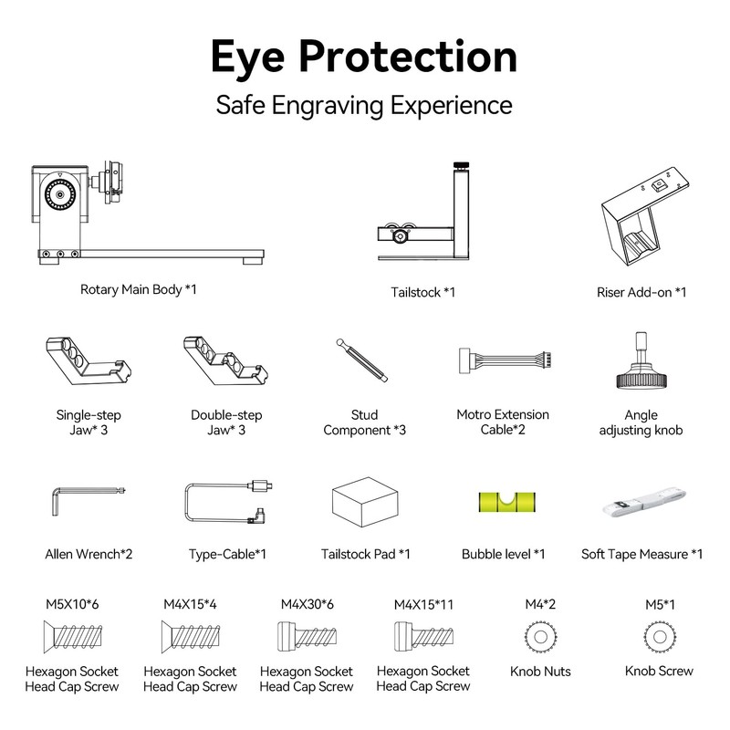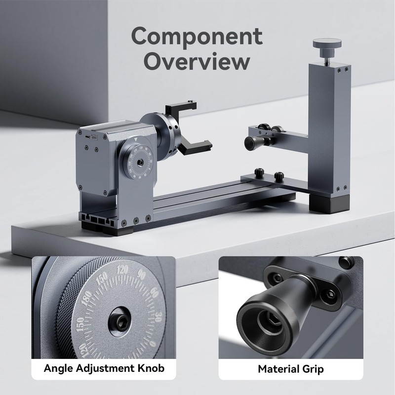 - Versatile Laser Rotary Attachment for Engraving: Longer 4-in-1 Laser Rotary Attachment is designed for 98% of cylindrical objects, including wine glasses, Yeti tumblers, baseball bats, rings, balls, and mugs with handles. This versatile rotary tool lets you unleash your creativity on a wide variety of surfaces with its four interchangeable modules: Roller Rotary, Chuck Rotary, Sphere-Engraving Module, and Ring-Engraving Stud.