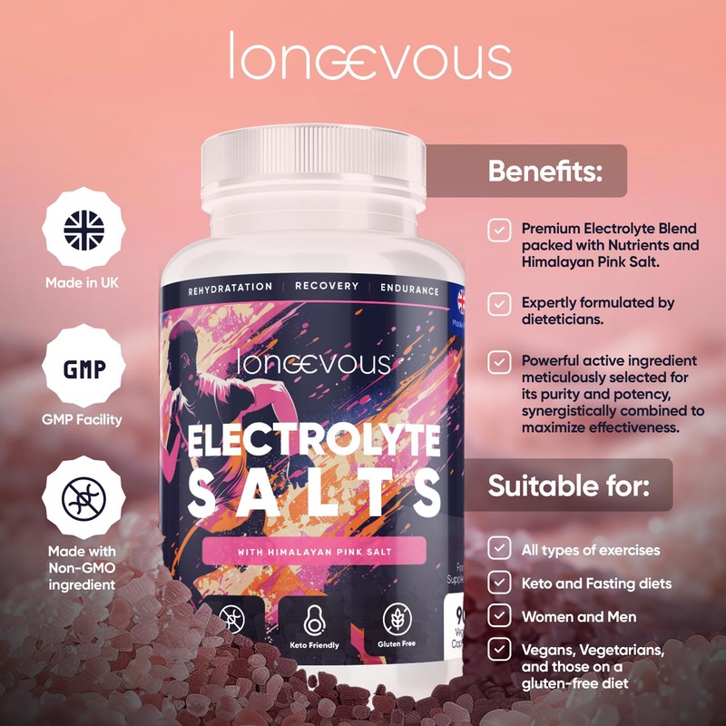 - **PEAK HYDRATION FOR PEAK PERFORMANCE**: Discover the power of optimal hydration with Longevous Electrolytes Tablets. Our expertly formulated blend of calcium, potassium, and Pink Himalayan Salt is engineered to support the hydration needs of runners and athletes, ensuring you stay energized and at the top of your game.