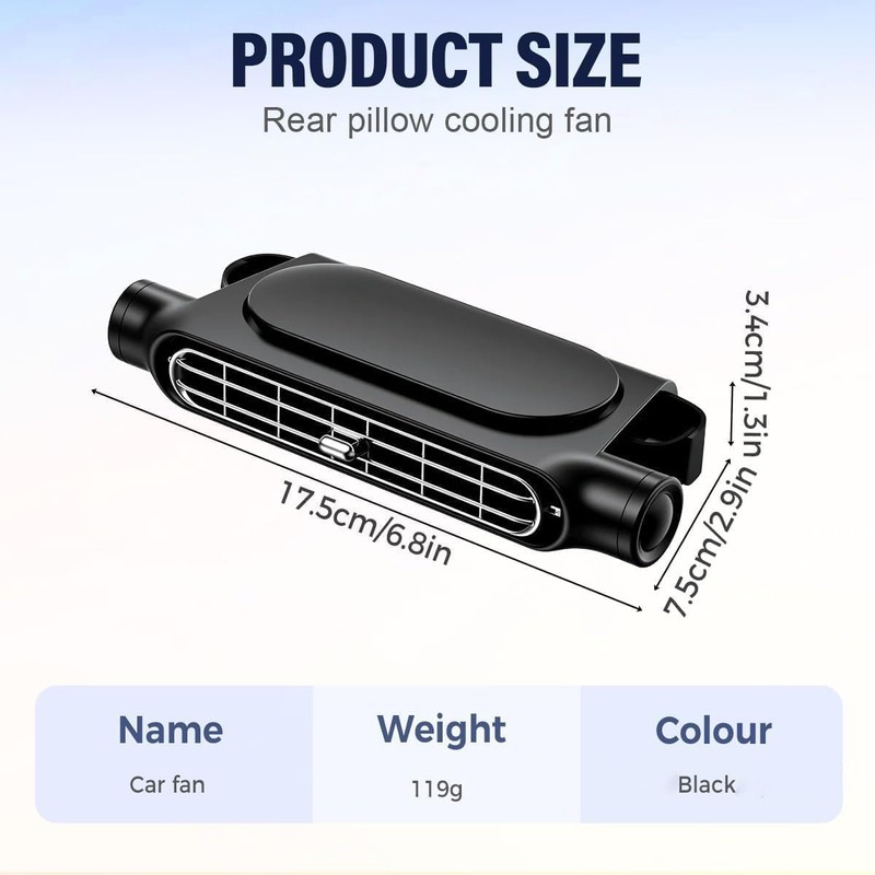 - 【Small Size】Keep your car organized with our innovative Car Rear Seats Fan. Its space-saving design fits seamlessly into the headrest of the rear seats without taking up valuable space in your car, providing optimal heat dissipation for a comfortable ride