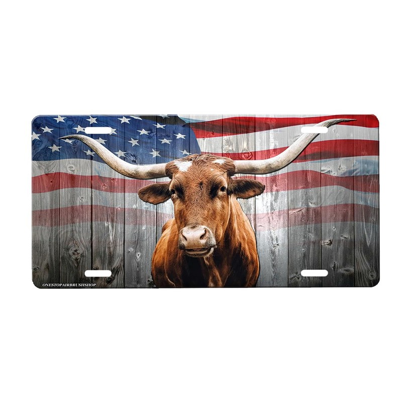 Longhorn Front License Plate with Custom Background Options
