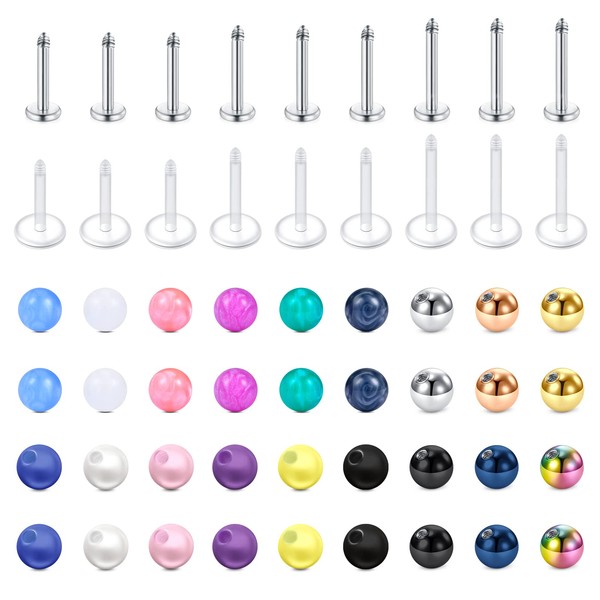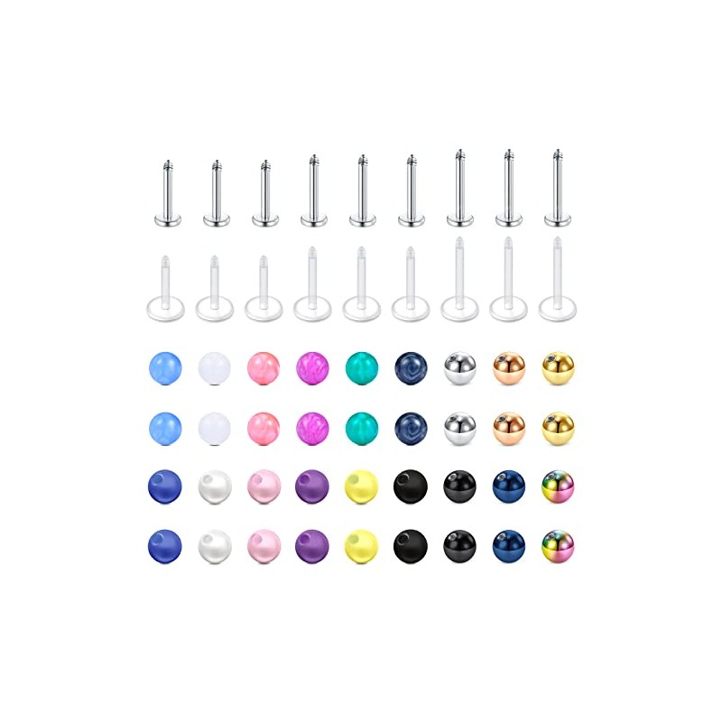 Longita 16G 6-10MM Bar Lip Piercing Stainless Steel & Acrylic Replacement Balls for Helix Tragus Stud Earrings Labret Lip Piercing Helix Piercing Set Tragus Earrings for Women