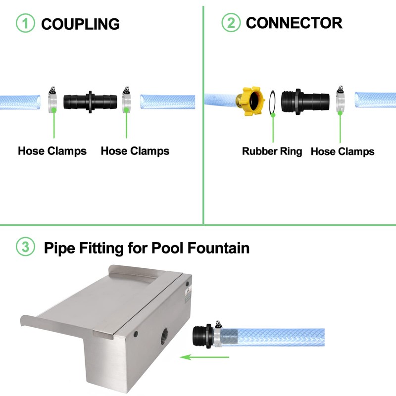 - 【Easy to Installation】The male thread head connected female thread(inner diameter 1.2'') , the barbed head is inserted into the water pipe(inner diameter 1'') , 304 SS hose clamp(3/4"-3/2") will firmly grasp the hose to ensure a secure leak-proof connection. Tip: Use a hot air gun or hot water to heat the hose to connect more quickly.