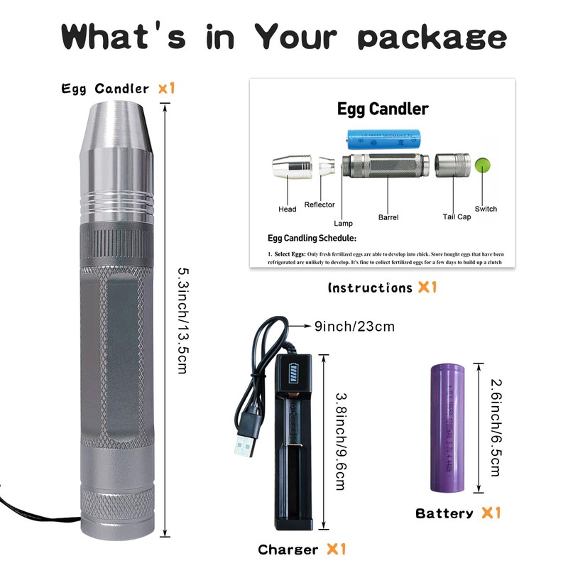 - Egg Candler: It is a complete set. You do not need to purchase any additional accessories.It can be used directly after charging without plugging in which is easy to carry and can be used indoors or outdoors.