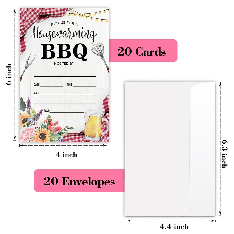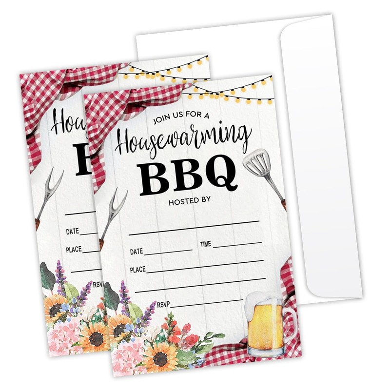 LONLONBANG Housewarming Invitations BBQ Picnic Housewarming Party Back Yard Cookout Invite Cards Summer Housewarming Party 20 Party Invitations with Envelopes -L796