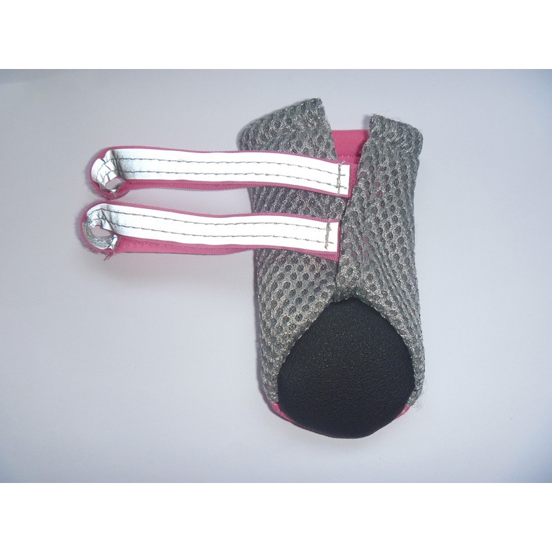 - A designed opening at back ankle, so it is easy to put on; fastened by 2 long and adjustable straps, which are reflective at night