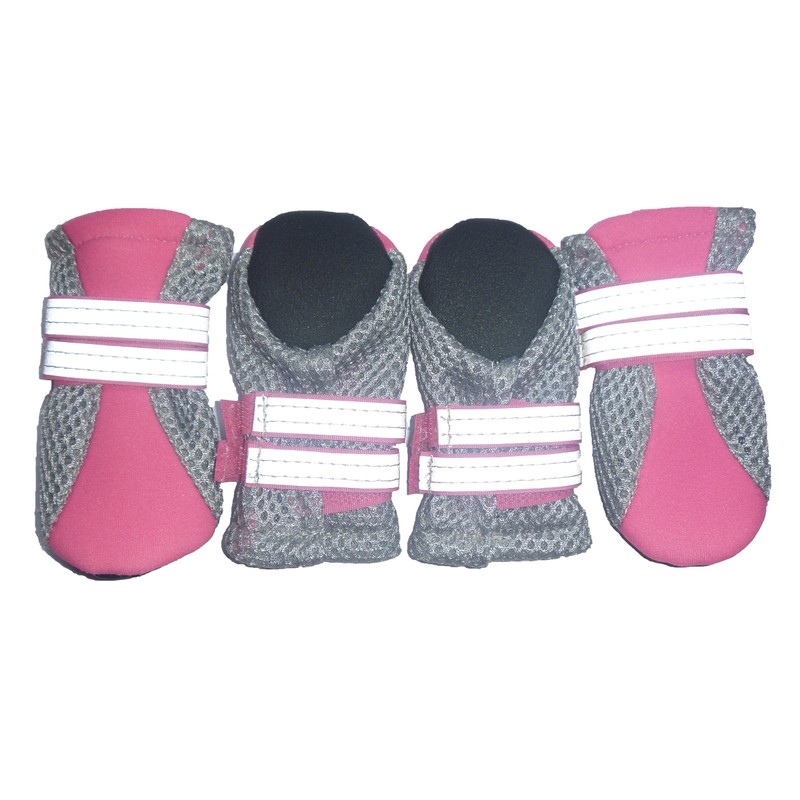 LONSUNEER Puppy Soft Sole Nonslip Mesh Boots, with 2 Reflective Straps, Set of 4 (Small, Pink)