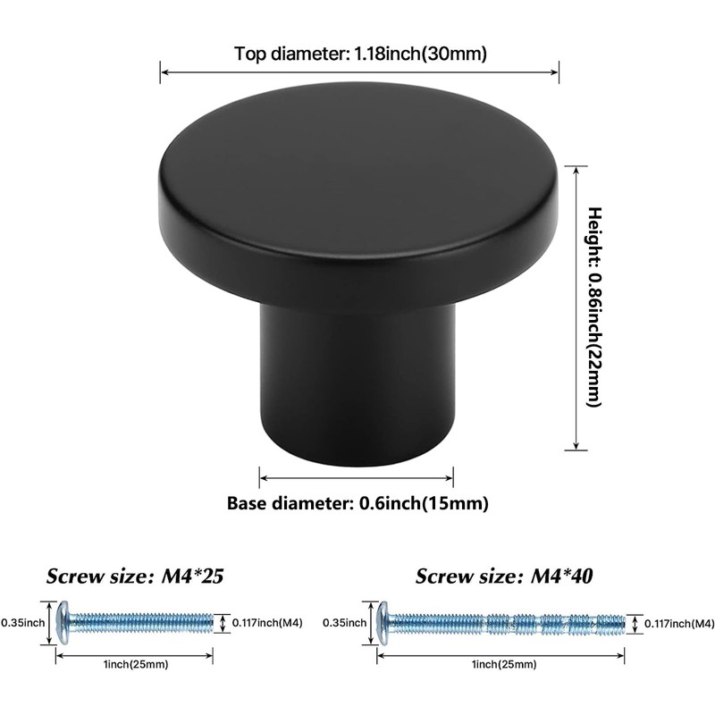 - 【WHAT YOU GET】Pack of 10 black knobs, every cupboard knob is individually wrapped to protect the beautiful color. Two lengths M4 standard screws(25mm & 40mm) which make installation easier. If you need other screws ,please contact us.
