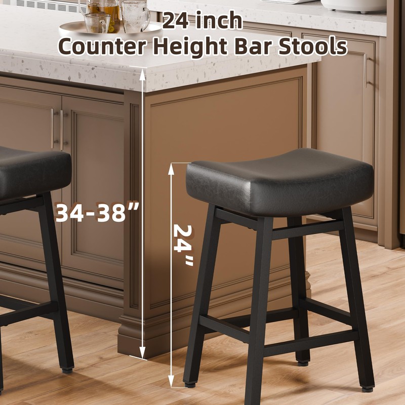 - Engineered for Comfort, Built for Daily Life: 4-inch premium foam cushion molds to your body like a favorite sofa. Ergonomic saddle counter height bar stools seat design reduces pressure points - perfect for long chats over coffee or family pizza nights. Space-smart silhouette slides completely under counters (fits in 10" clearance). PRO TIP: Ideal bar stools for kitchens island, apartments - barstools set of 2 take less floor space than an armchair