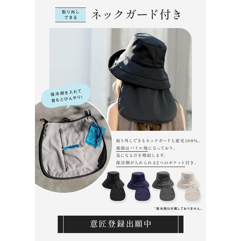 Loo&c Women's Hat, 100% Light Blocking, UV Protection, Large Size, Wide Brim, UV Charmant Hat, Light Shielding Premium, Ice Pack Pocket, Neck Guard Included, UV Protection, Chin Strap, Adjustable Size