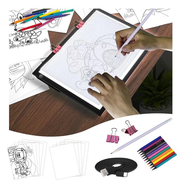 - 【Complete Creative Kit】The Art kit includes the Light-up Tracing Pad,1 Graphite Pencil, 2 clips, 12 vibrant color pencils,20 Tracing Sheets,20 Blank Sheets and a USB charging cable, a variety of tracing sheets to inspire their imagination, and plenty of blank sheets for limitless creations craft kit.