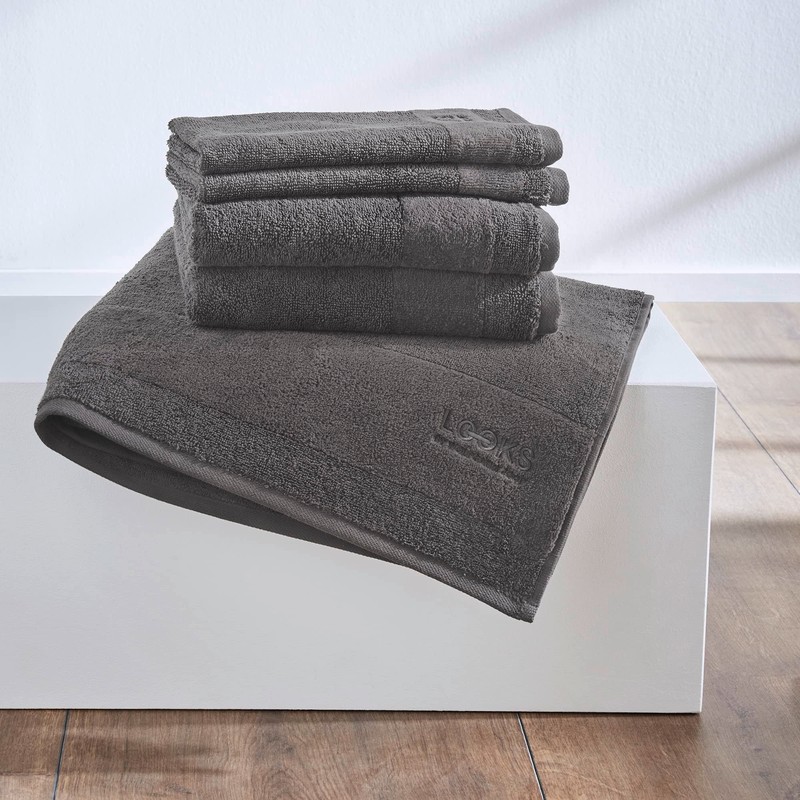 LOOKS By Wolfgang Joop Bath Towel, 70 x 140 cm, 100% Cotton, Luxury Hand Towel with Hanger and Embroidered Logo, Grey