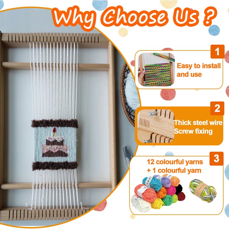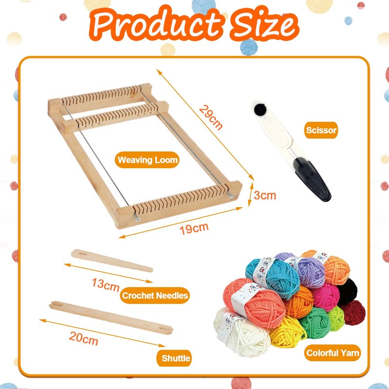 • Safe materials: the weaving frame is made of natural, polished pine wood and is not only smooth and protective to prevent injury to small hands, but also robust and durable to withstand the tension that children need during the weaving process, so children have fun playing in a safe environment, creativity.