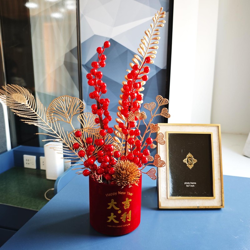 - Artificial Flowers: Beautifully crafted from high-quality artificial flowers such as berry, creating an inviting and celebratory atmosphere, making it an ideal centerpiece for Lunar New Year celebrations