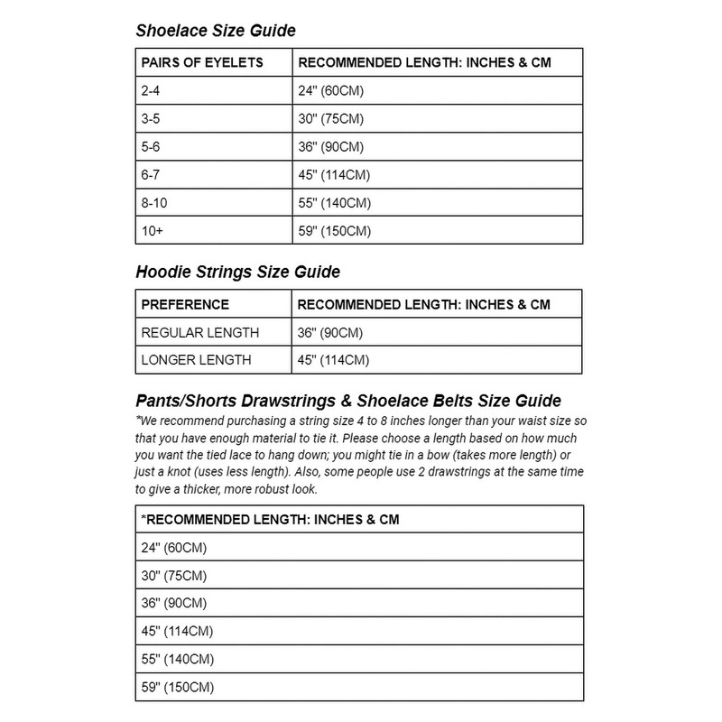 | Size: | 10+ Eyelets / 160cm / 63" |