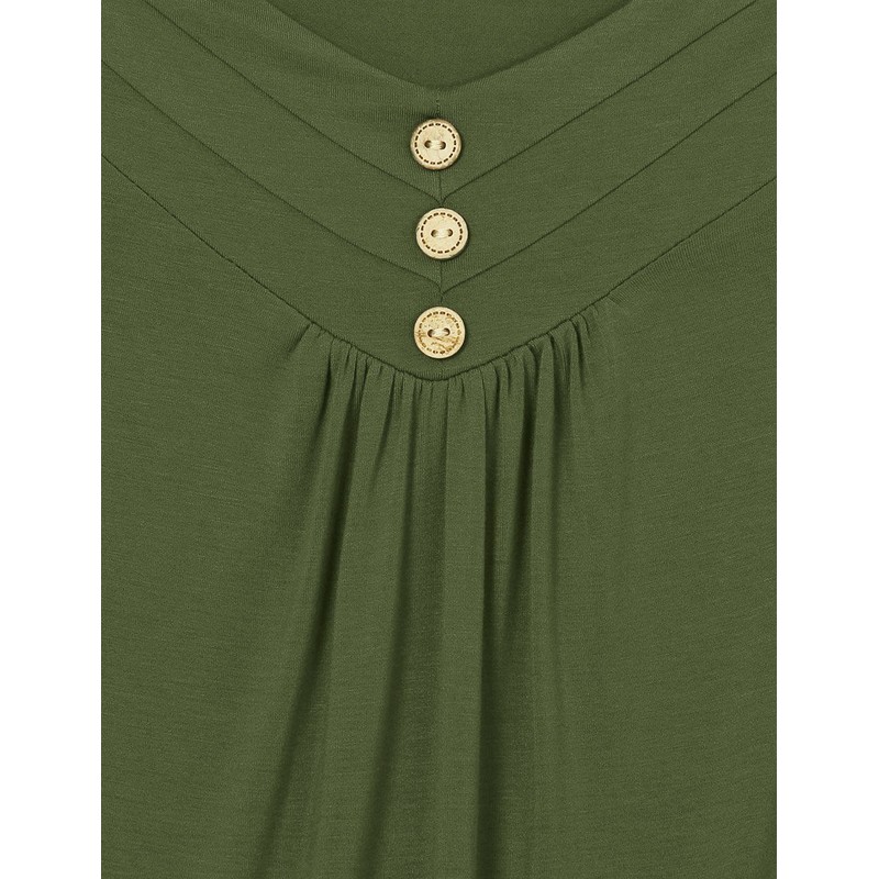 - Feature 2:Swing hemline long enough to cover your hips.This strappy tunic camisole features stacked v neckline with three wooden buttons embellished for an elegant look.