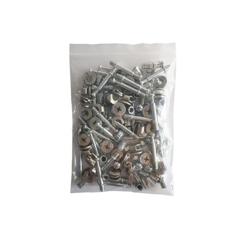 - 34 sets of cam fittings, per-insert nuts, and dowels are supplied