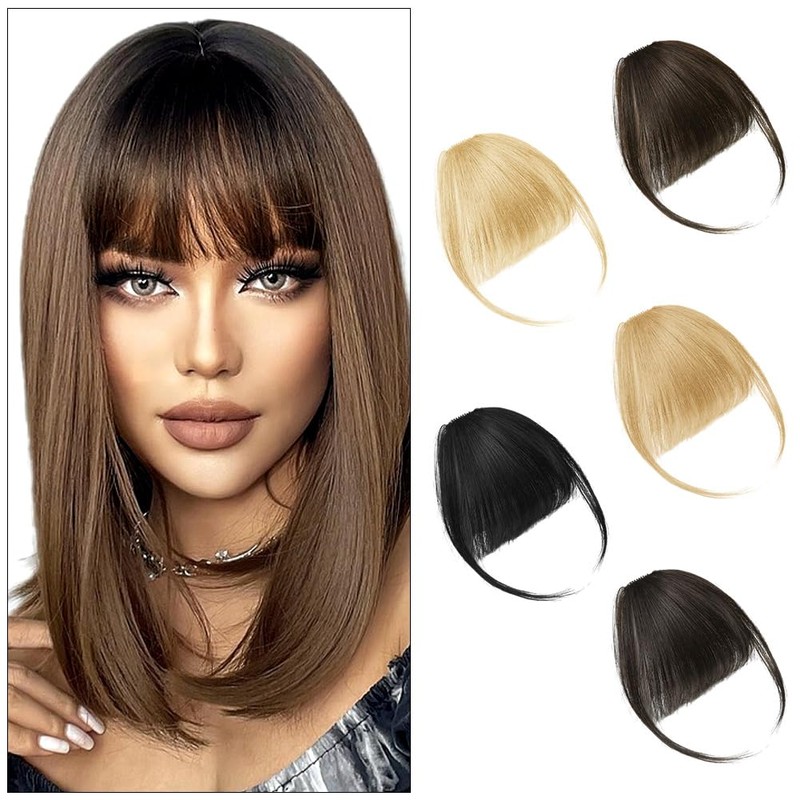 - Multiple Color Options: The clip in fringe bangs are available in six colors, including brown-black, black, dark brown, light brown, gold, and gray-gold, and two materials, real hair wigs and chemical fiber wigs, to meet your different preferences