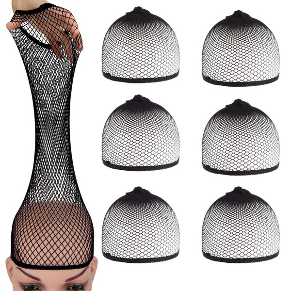 Lopsity 6PCS Wig Cap,Hair Net for Wig,Elastic Mesh Net Wig Caps,Wig Cap for Long Thick Hair,Fishnet Wig Cap Liner Weaving Caps for Women, Men (6xbalck)