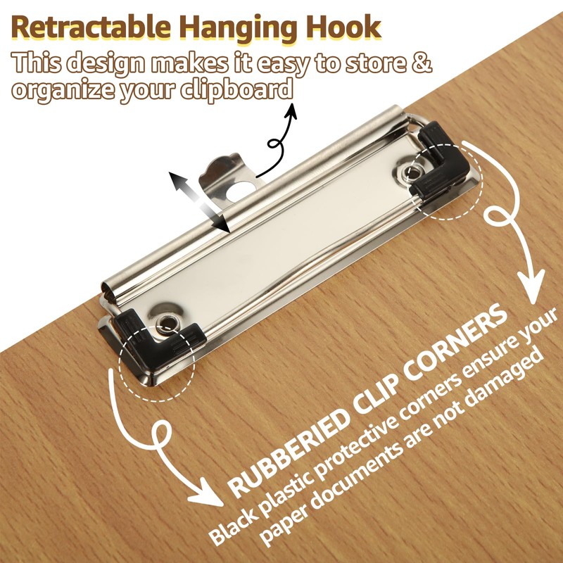 - The A4 wooden clipboard is equipped with a hidden, retractable hook at the top. This design allows you to easily store and organize clipboards.