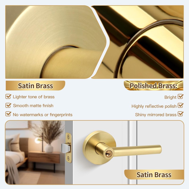 • 【Sleek Design】The sleek round design brushed gold door handle with smooth exterior and shape, ensures safety for your family members, featuring no protruding sharp corners. The brushed brass finish exudes a warm, subdued gold with a smooth matte appearance, less glossy but rich in elegance.
