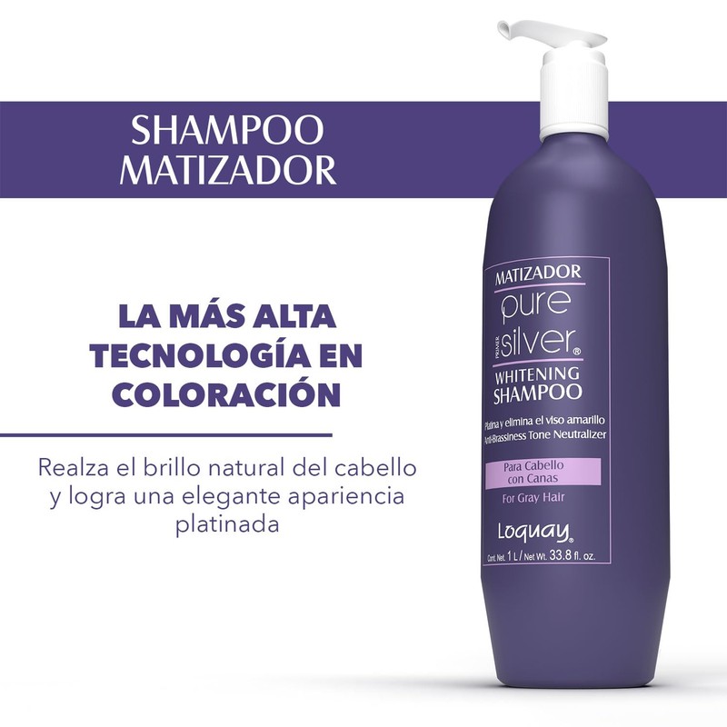 Loquay Matizador PURE SILVER Primer Whitening Shampoo 1L/ Net Wt 33.8 Oz