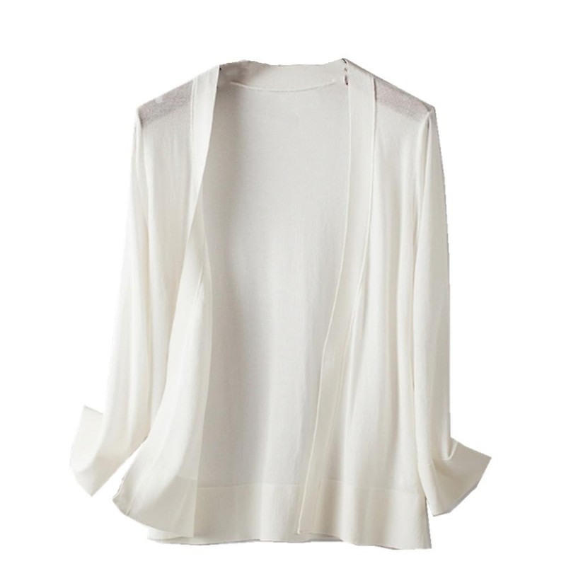 Loradouphi OL 210520 Long Sleeve Women's Cardigan, No Buttons, Lightweight, Knit, Protects From AC, UV, Sunburn, Cut and Sewn, Top, Spring, Summer, Autumn, Plain, Simple, Slimming, Roomy, Stylish, white