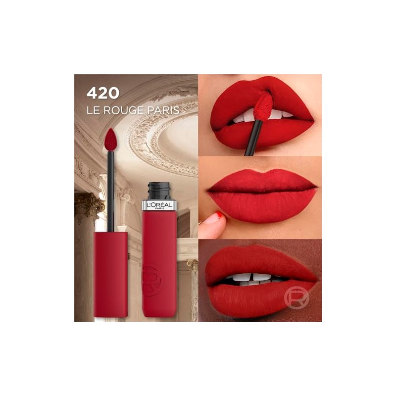LOral Paris, Infallible Le Matte Resistance, Labial Lquido Mate Larga Duracin 16hr, Color Intenso con cido Hialurnico, Tono True Love 420, 5ml